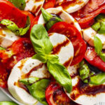 Tomate manzano, queso de búfala, orégano, pesto, albahaca