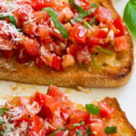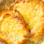 Pan tostado, queso parmesano, caldo de pollo y cebolla