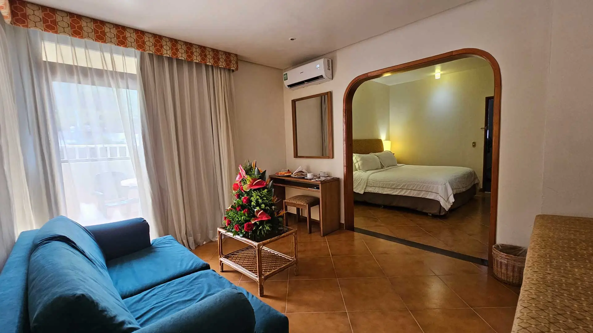 Esta suite cuenta con aire acondicionado, 1 cama King Size, sofá cama, vestidor y zona de estar. Está equipada con escritorio, sofá y TV de pantalla plana con canales vía satélite y por cable, nevera ejecutiva y caja fuerte. Tiene vistas lateral al mar y a la montaña.